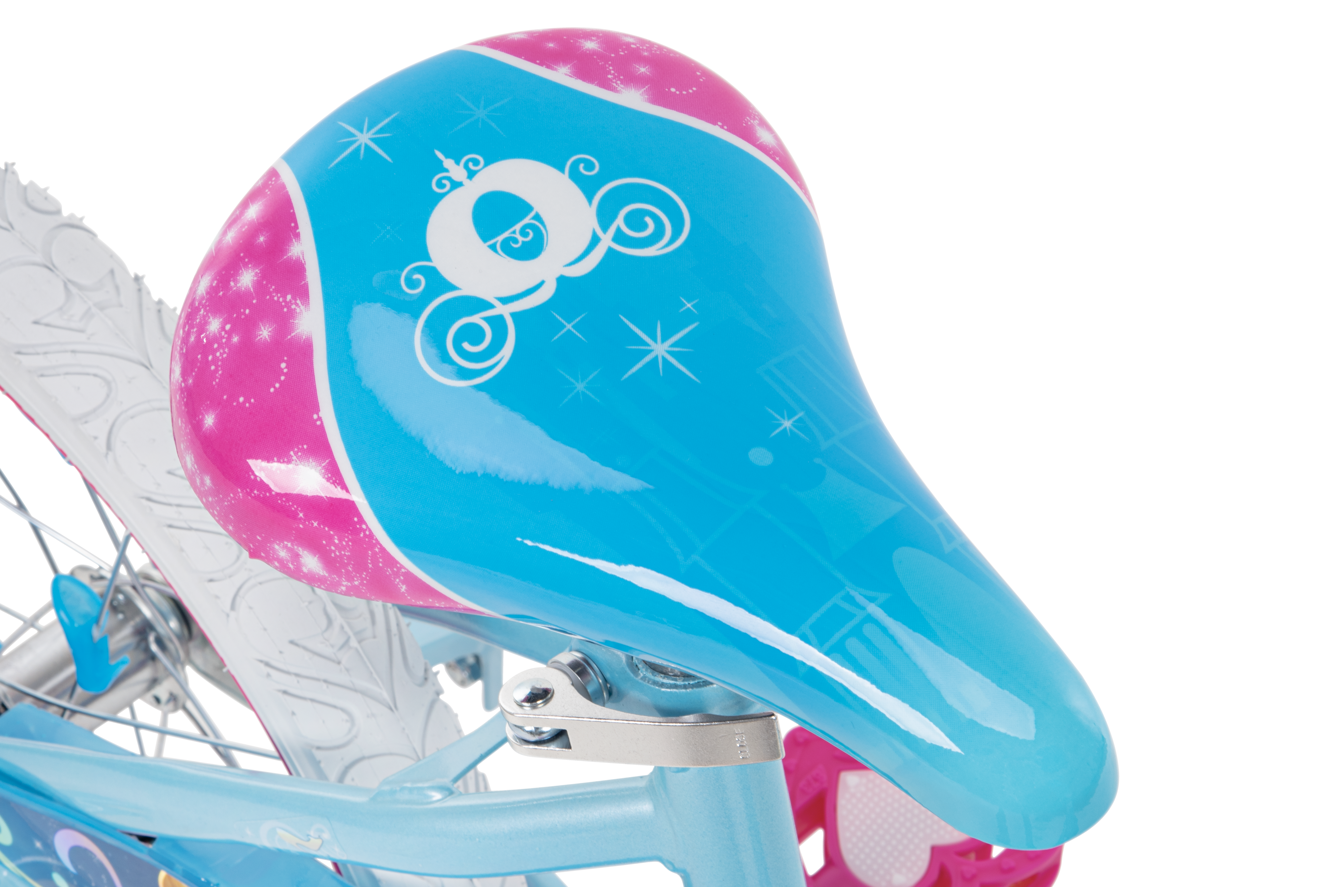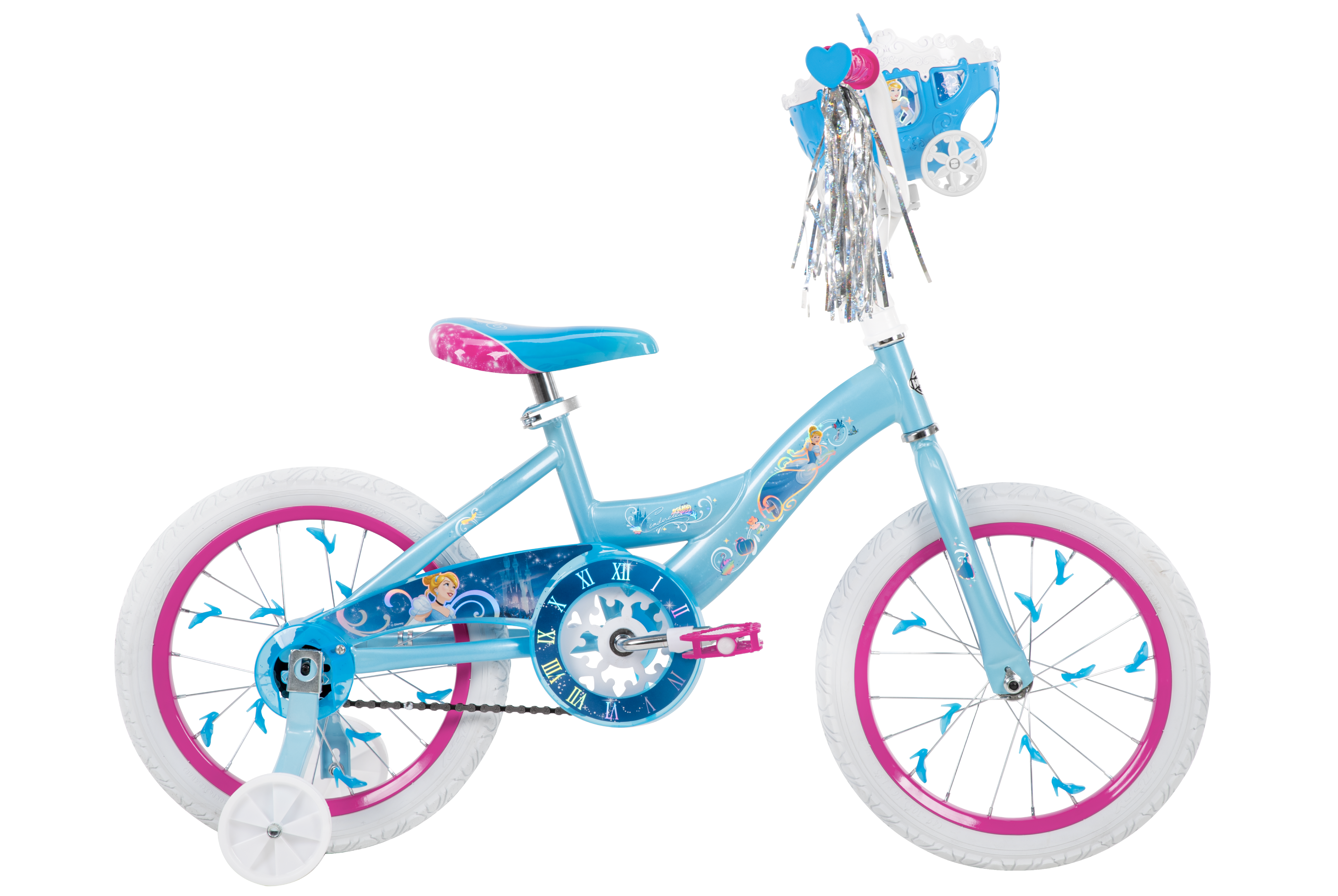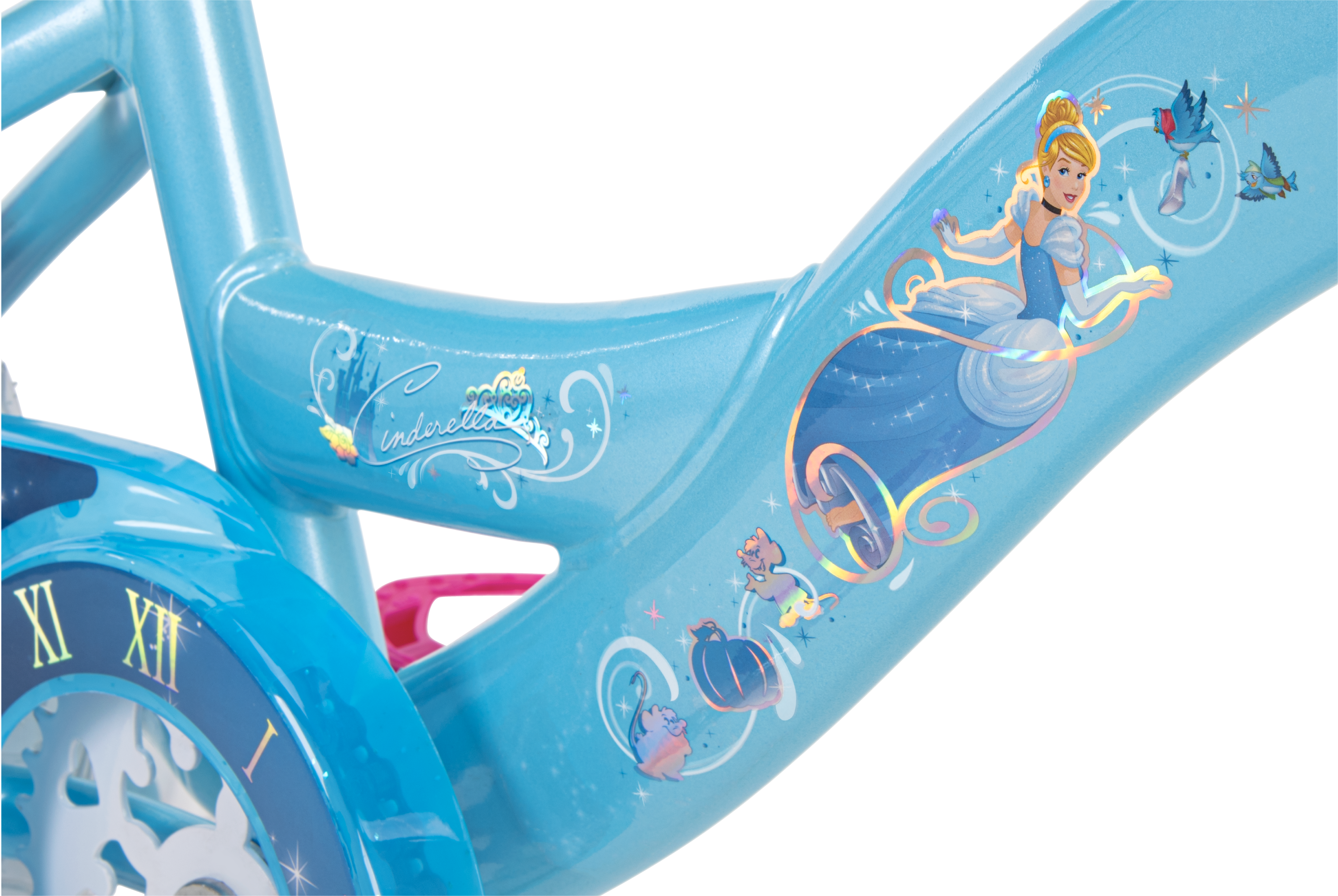 For this Cinderella bike, I focused on play patterns. What would the kid be daydreaming while riding this bike? A glamorous ride to the castle? Or maybe a hasty retreat after the clock strikes twelve?